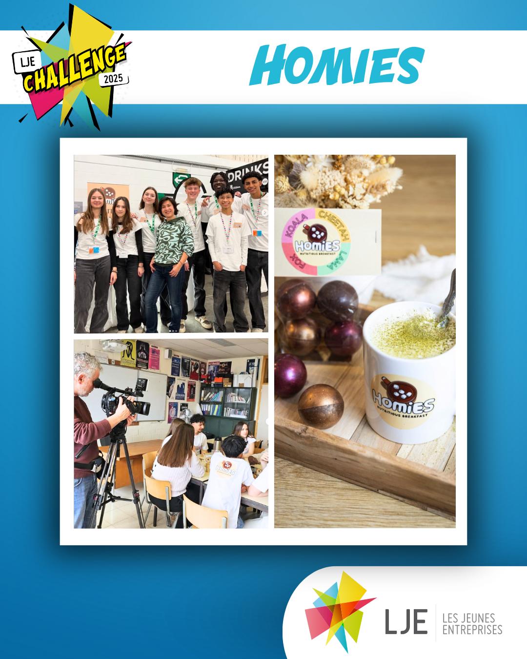 Homies ECOLE INTERNATIONALE "LE VERSEAU" - E.L.C.E. BIERGESCréer des boules de chocolat chaud à faire fondre dans du lait, contenant des ingrédients aux bienfaits ciblés comme le collagène, des poudres de champignons ou du cacao. Le projet allie plaisir gustatif et bien-être, en proposant une alternative originale et saine pour bien démarrer la journée.