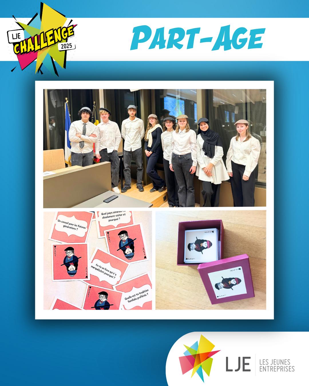Créer une série de jeux de cartes, ayant pour objectif de favoriser les échanges entre les jeunes et les personnes âgées afin de rassembler les différentes générations. La mise en oeuvre est pensée sur base de concepts variés allant du Memory sur Bruxelles à des jeux de société classiques comme Menteur et Le Jeu des questions, en passant par des versions uniques de jeux classiques.